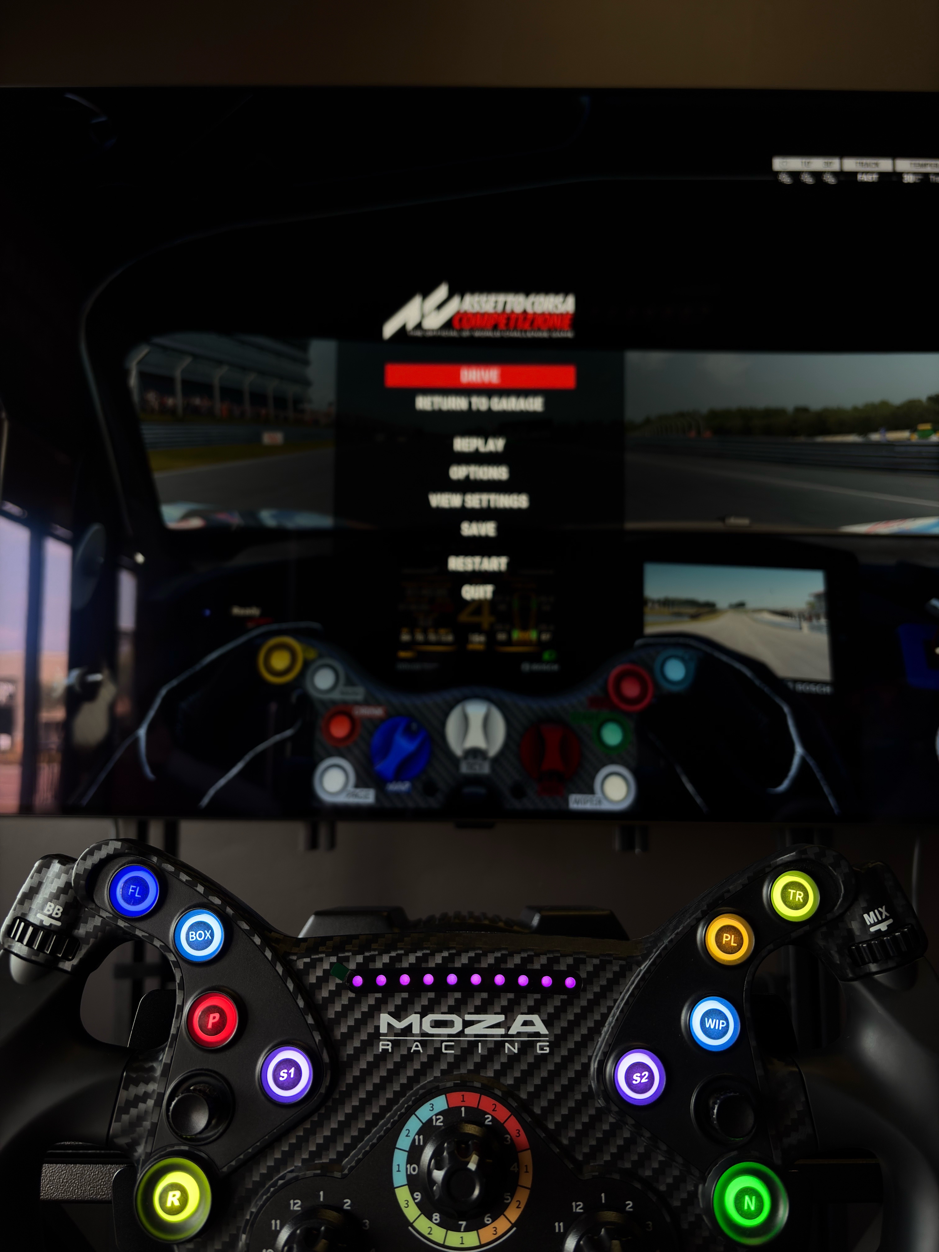 I’m running a trak racer rig with simagic evo sport with neo x wheel, inverted p1000 pedals, and a BDH shifter. Single 50” plasma screen. Future upgrades is triple monitor, and a round wheel, mainly for rally. AC evo has been the main game lately. |