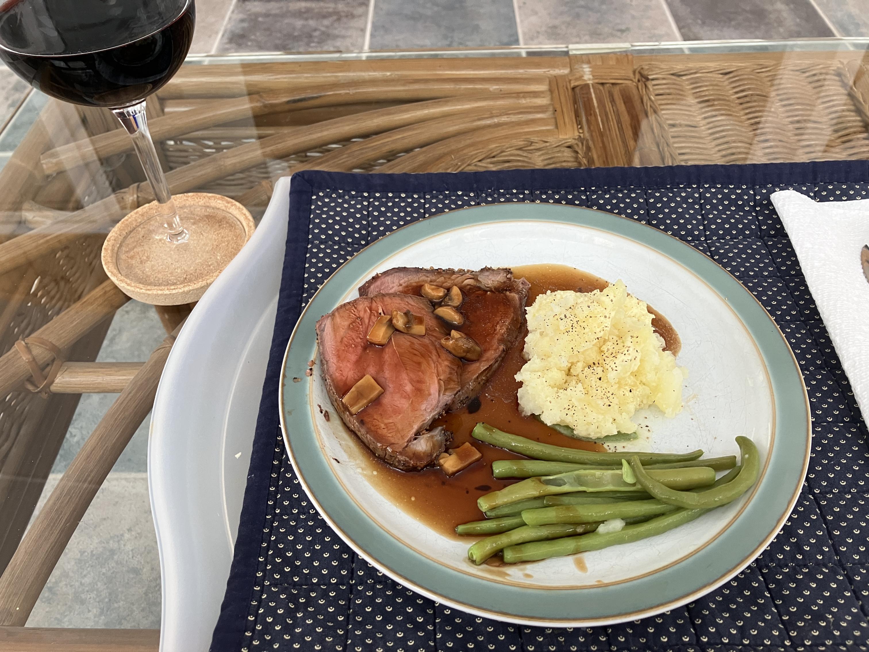 Sunday Night Roast with New White Mash and Green Beans.